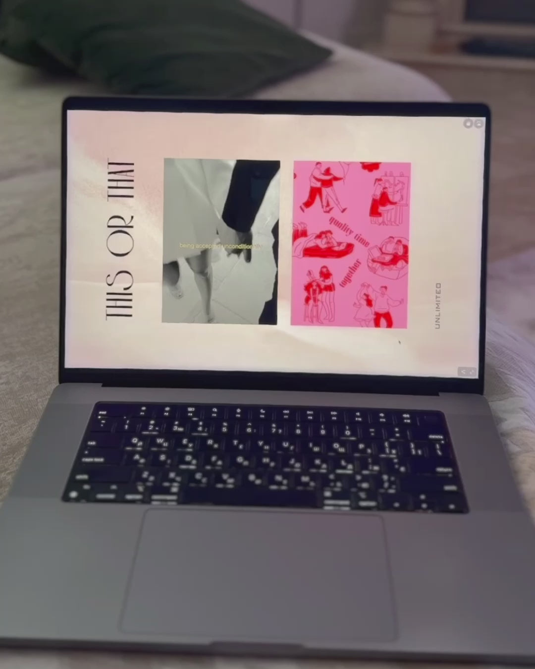 An interactive Genially activity where learners choose between two contrasting options, set one aside, compare the remaining option with a new one, and explain their choice.